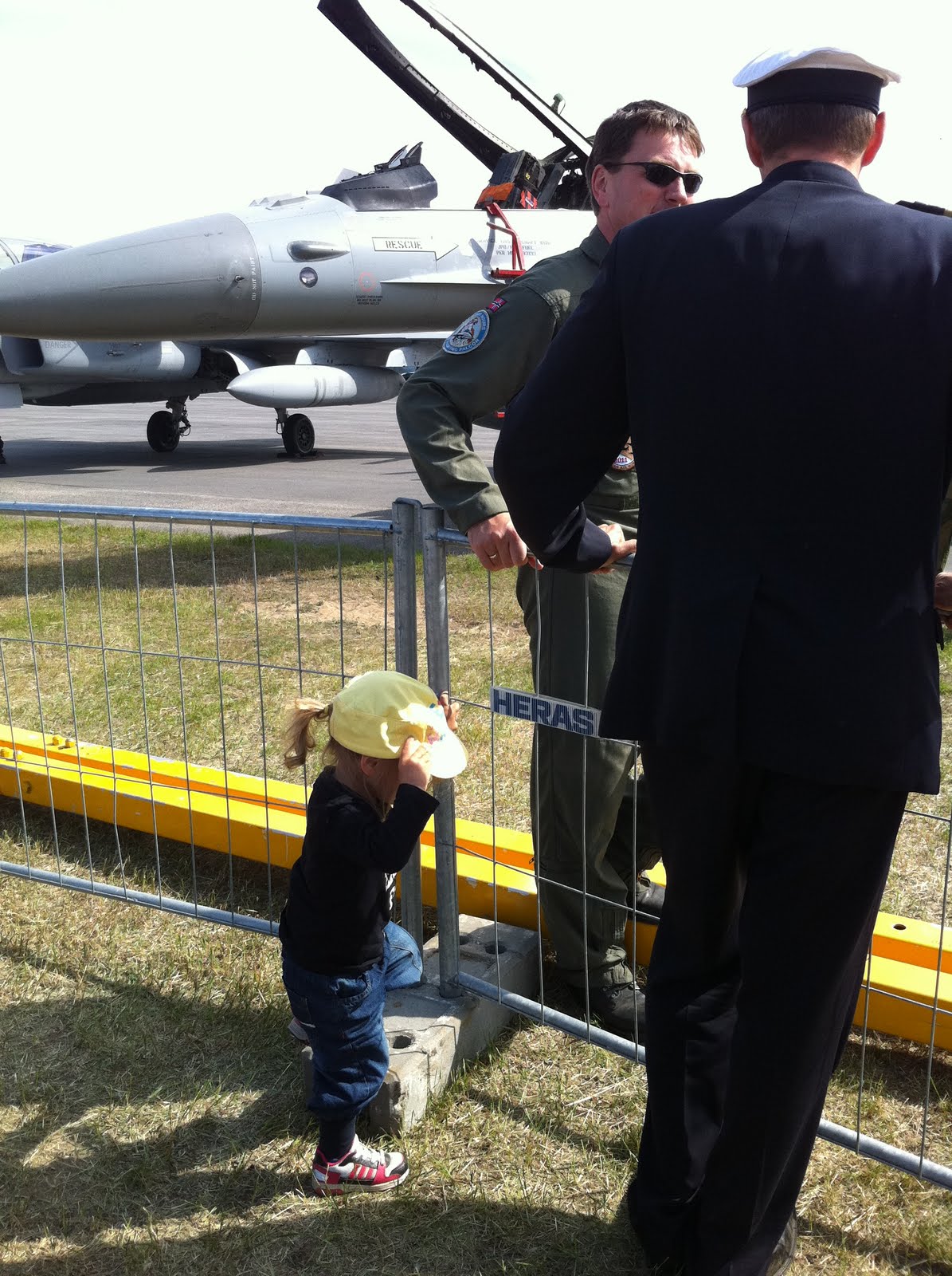 Är det flygets dag så är det, då är det bara att pallra sig dit. Intresset vad gäller flygplan och uppvisningar varierar i vår familj. Jag är inte ett dugg intresserad. Visst är de duktiga, har genomgått en massa utbildningar, tränat, tränat och åter tränat, men nej jag finner inget nöje i att titta på när de leker i luften. Thomas och Alice däremot delar flygplansintresset och hade det inte varit för att Alice älskar flygplan så hade jag inte åkt dit. Det var dock en stor besvikelse för henne att inte få åka något flygplan. Astrid var ungefär lika imponerad som jag. Hon var mest grinig, men vem är inte det efter flera dagars feber.